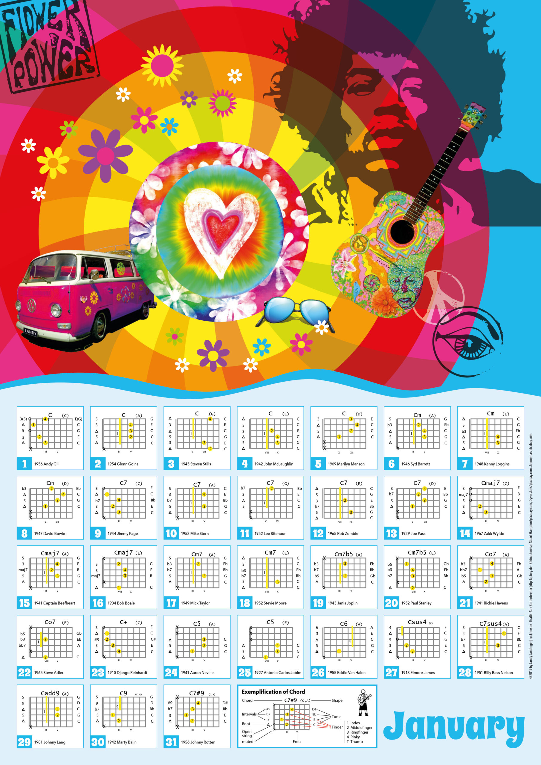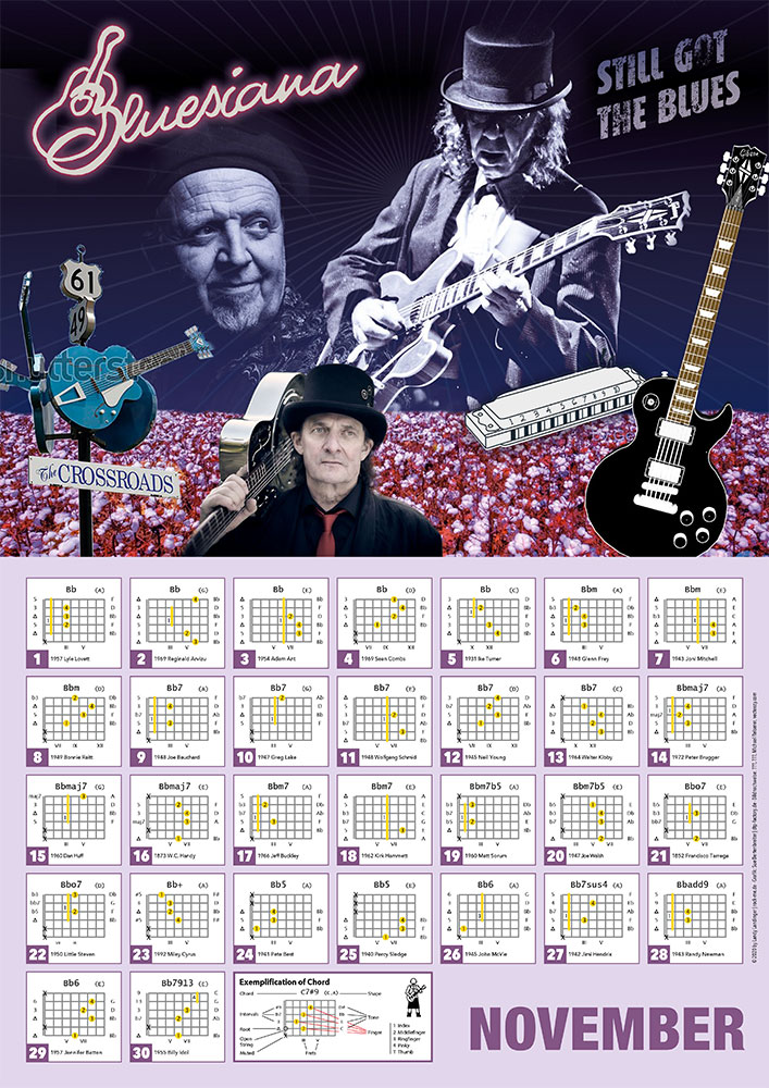 Der Kalender ist aus Landy Landingers langjähriger Tätigkeit als Profimusiker und Gitarrenlehrer entstanden und basiert auf immer wieder gestellten Fragen und Wünschen seiner Schüler und Kollegen.